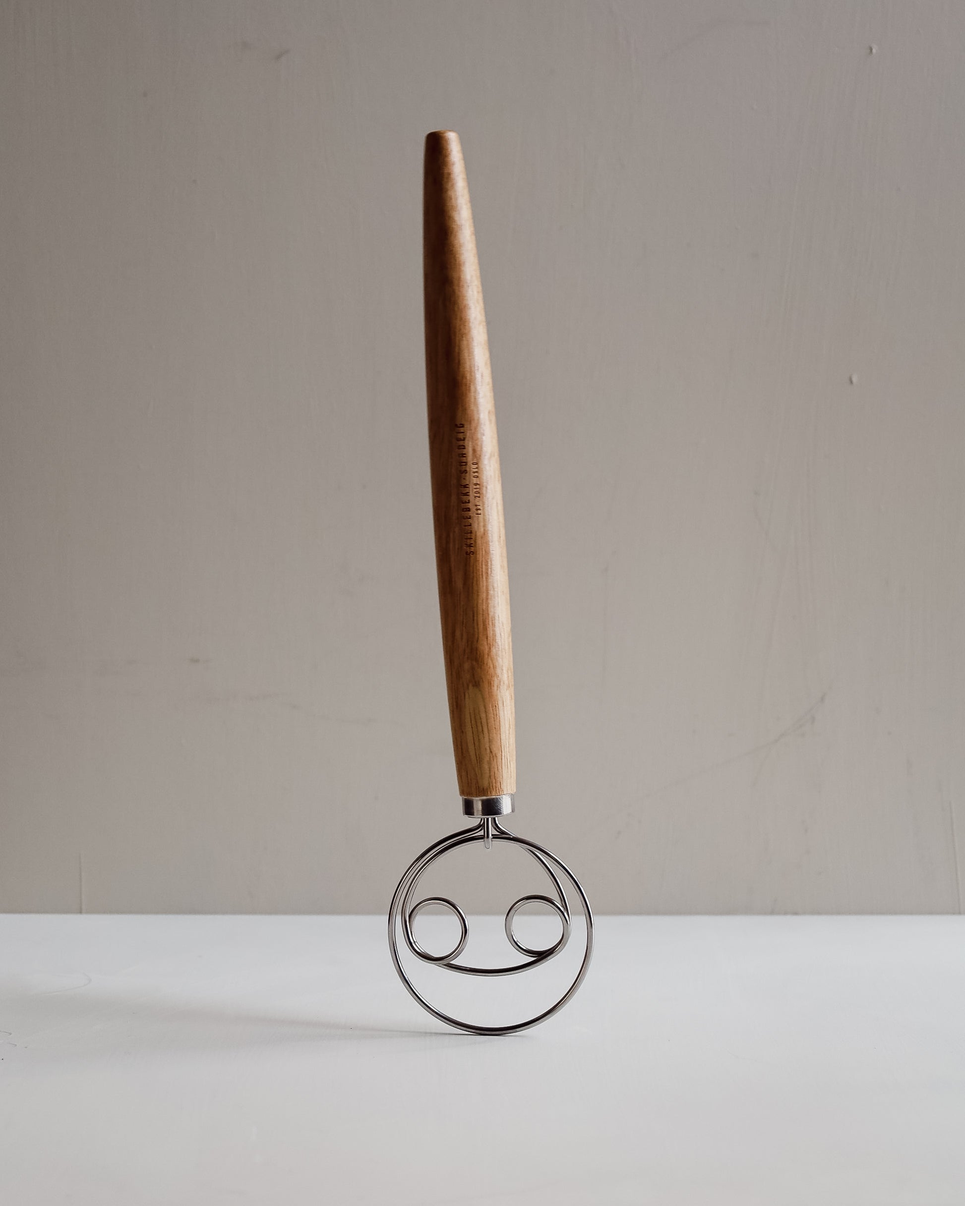 Med et solid håndtak i ekte eik og en kraftig spiral i rustfritt stål, blander den deigen grundig og skånsomt, uten å bryte ned glutenstrukturen. Resultatet? Luftige, sterke og velsmakende brød – akkurat slik du vil ha dem.
