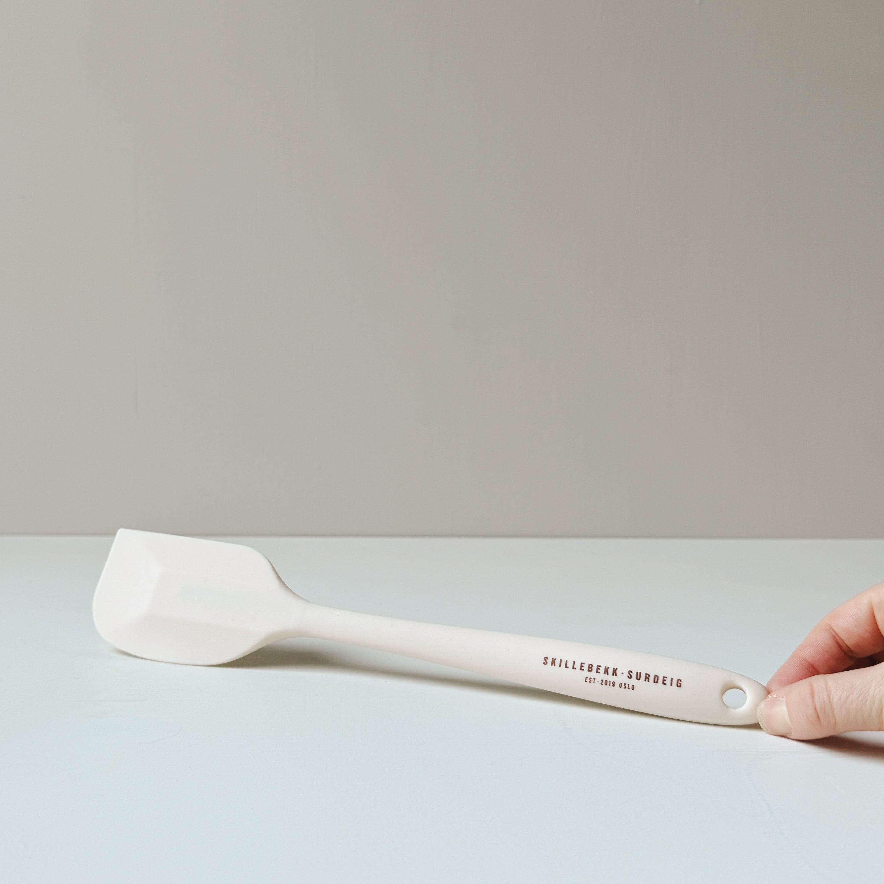 Stor slikkepott i myk silikon – utviklet av Skillebekk Surdeig for effektiv blanding av deiger, rørekar og større matmengder. Det fleksible hodet gjør det enkelt å få med alt, uten å skade bakeboller eller surdeig.