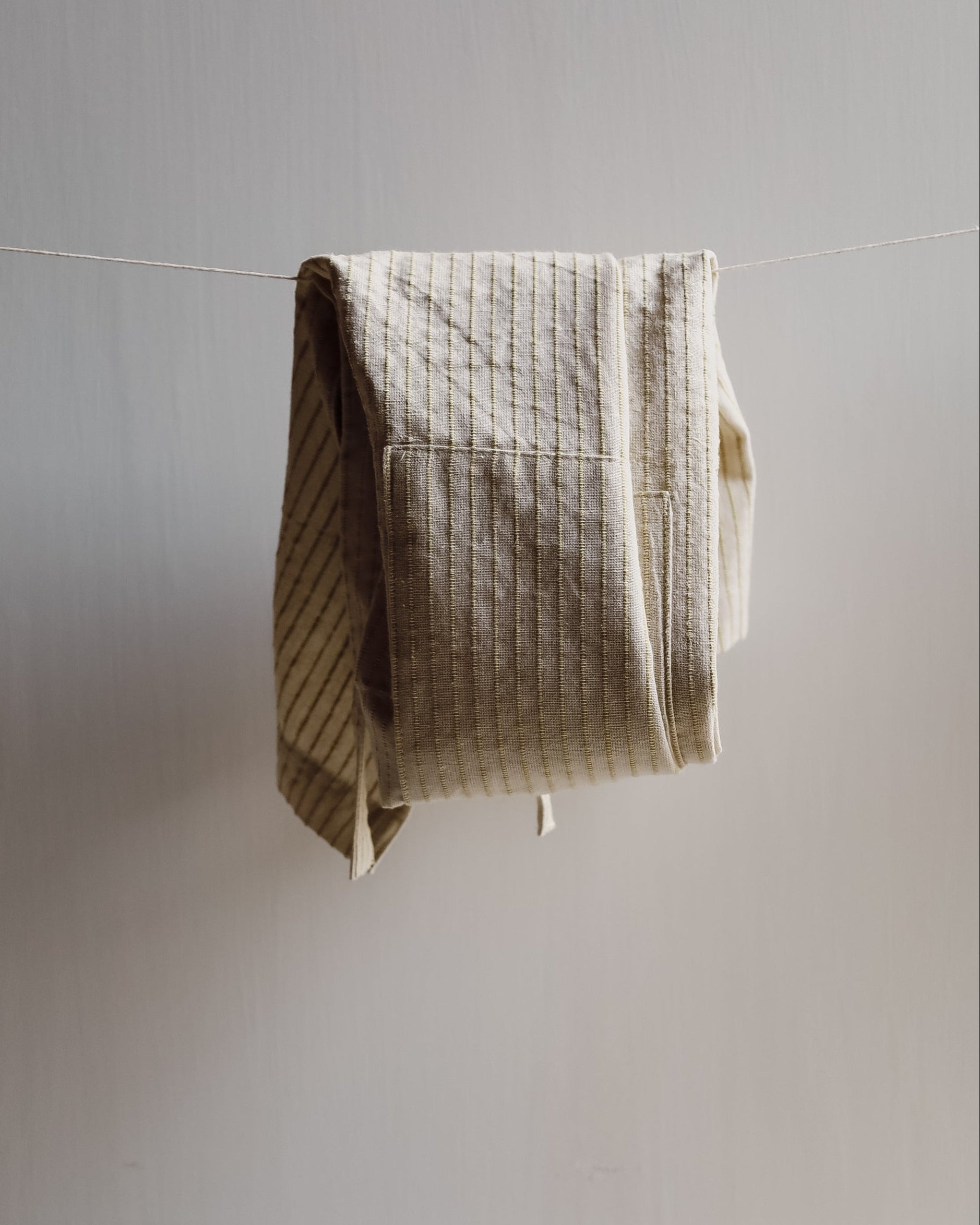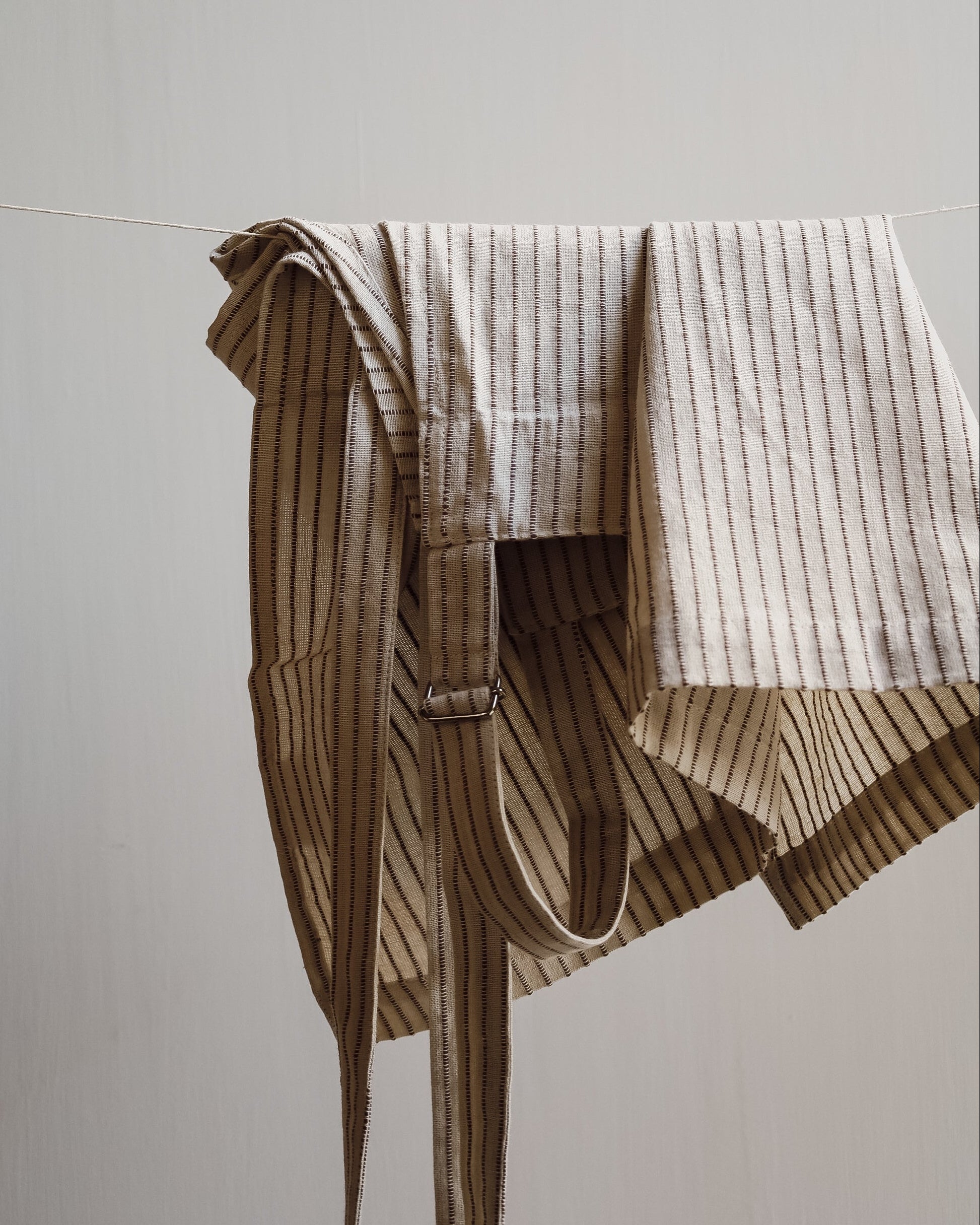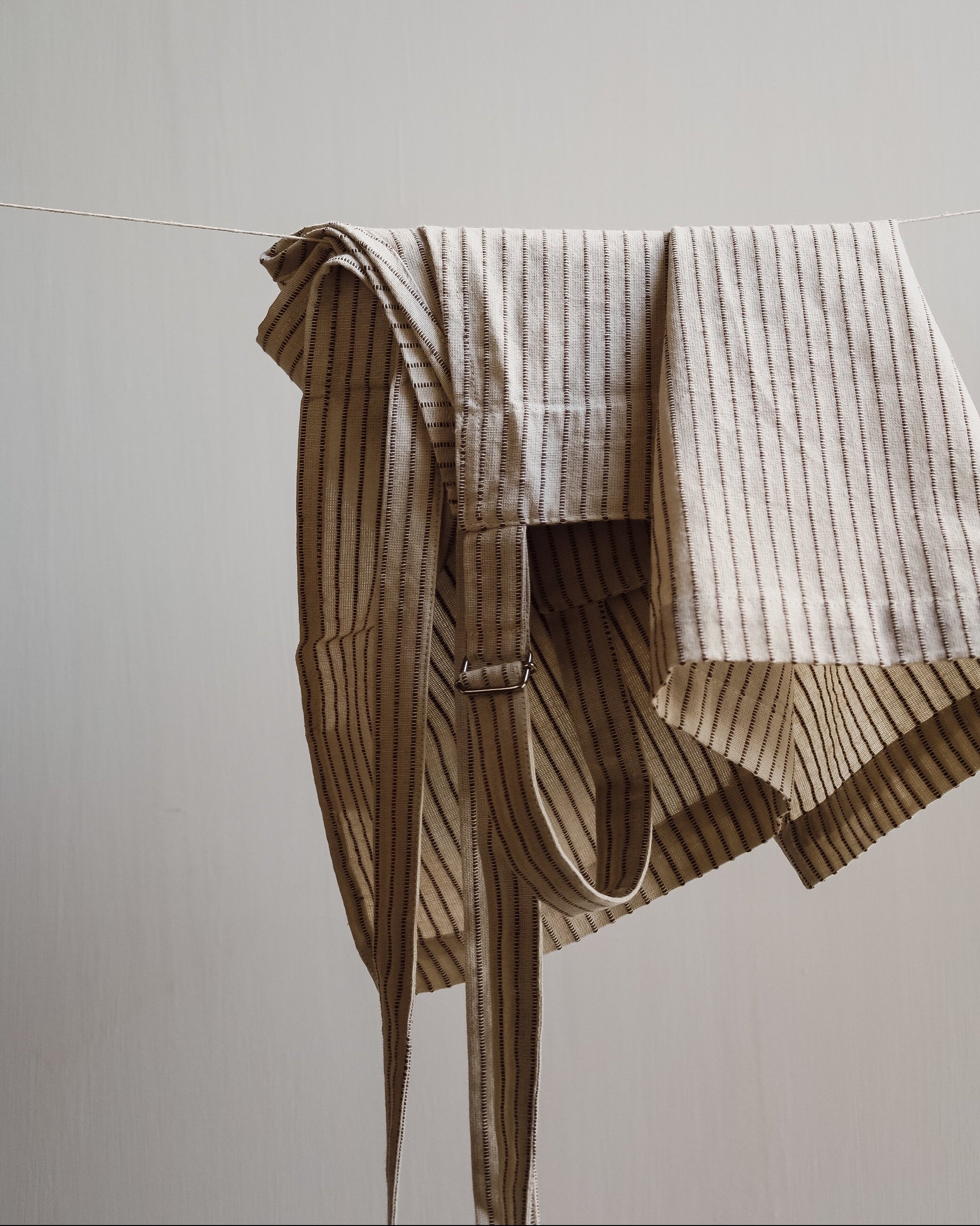Forkle i bomull - beige med brune striper