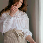 Forkle i bomull - beige med gule striper